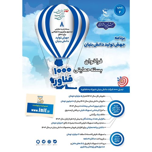 - فروش محصولات/خدمات دانشبنیان شرکت در سال 1402 بیش از 100 میلیون تومان باشد.